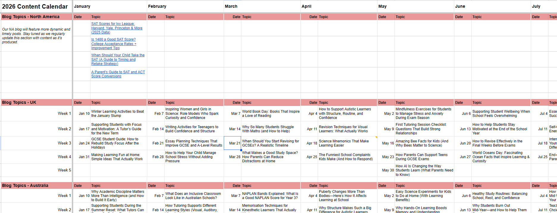 Click below to access our 2025 Content Calendar! This calendar outlines blog topics, infographics, videos and monthly client & tutor email themes for the year.