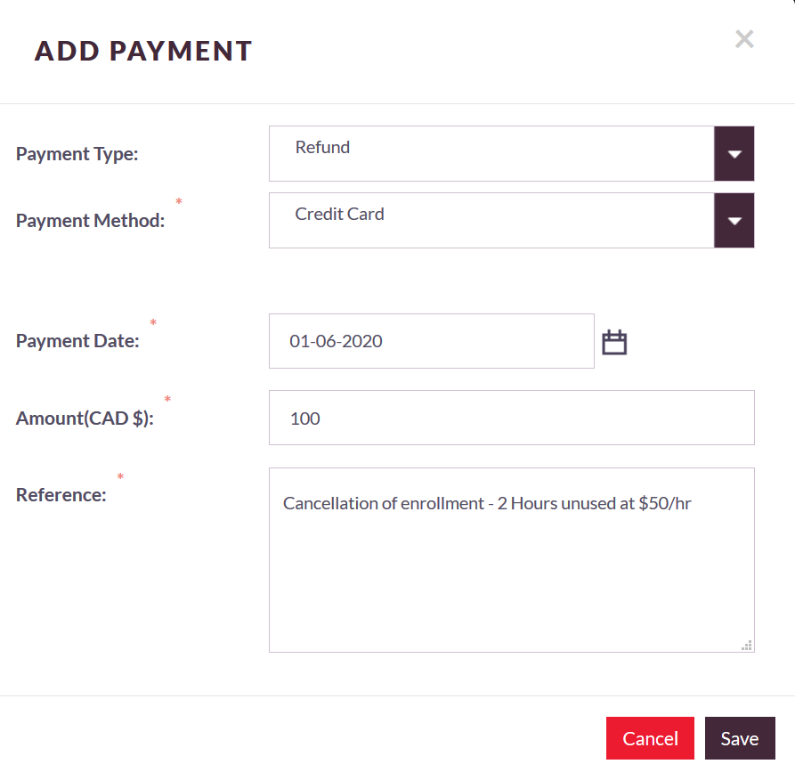 How to Add a Refund After an Enrollment Is Closed